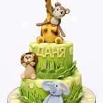 Торт с фигурками животных в тропиках