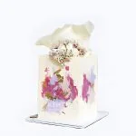 Элегантный квадратный торт в нежной пастельной гамме приковывает взгляд своей необычной формой. Верх украшен изящной композицией из реалистичных цветов, создающих ощущение весеннего сада. Гладкая мастика и геометрические узоры подчеркивают современный стиль. Каждый элемент декора продуман до мелочей, создавая гармоничный визуальный образ, наполненный романтикой и утонченностью.