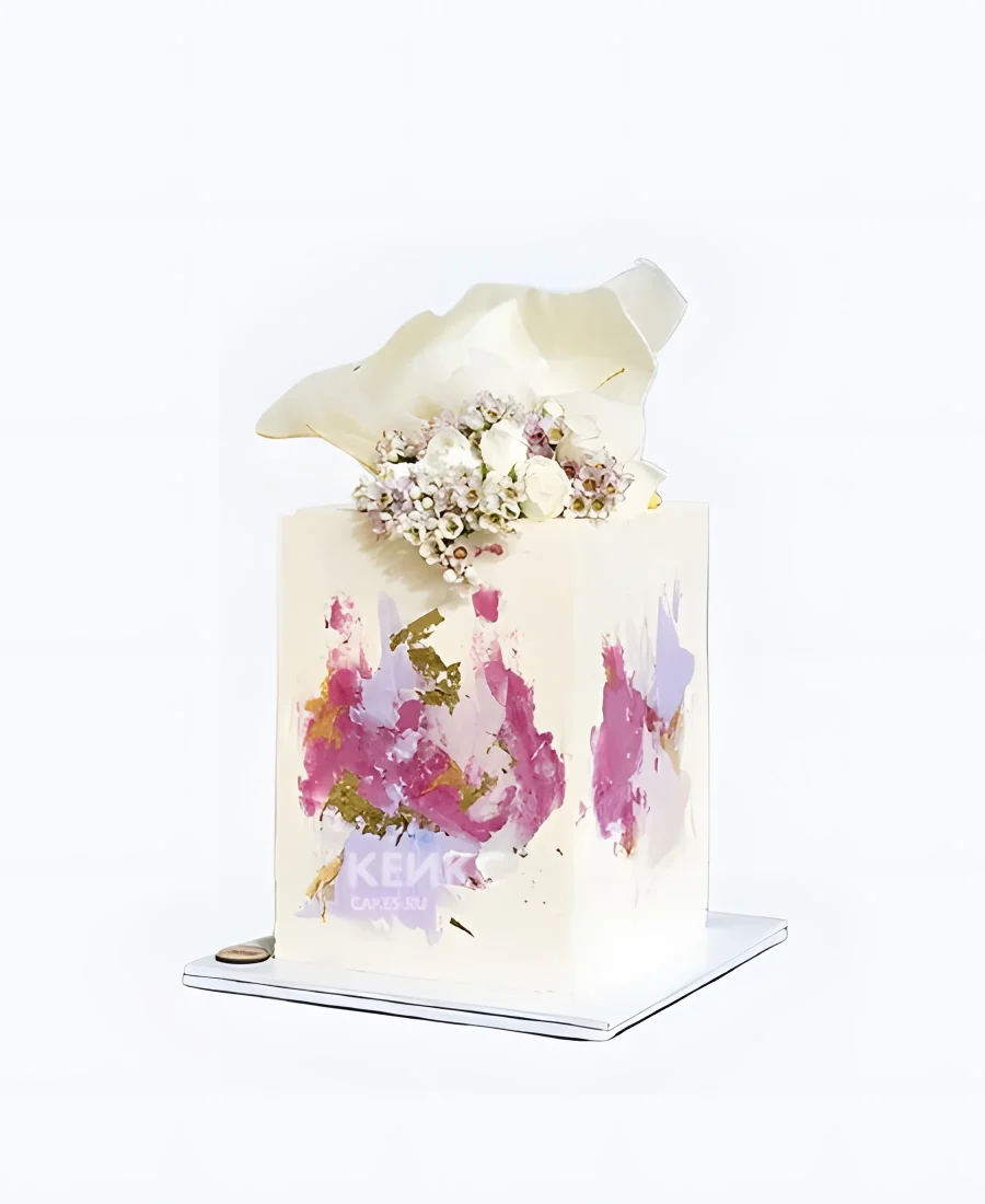 Эксклюзивный необычной формы торт с цветами