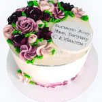 Эстетичный торт на юбилей маме с кремовыми цветами
