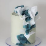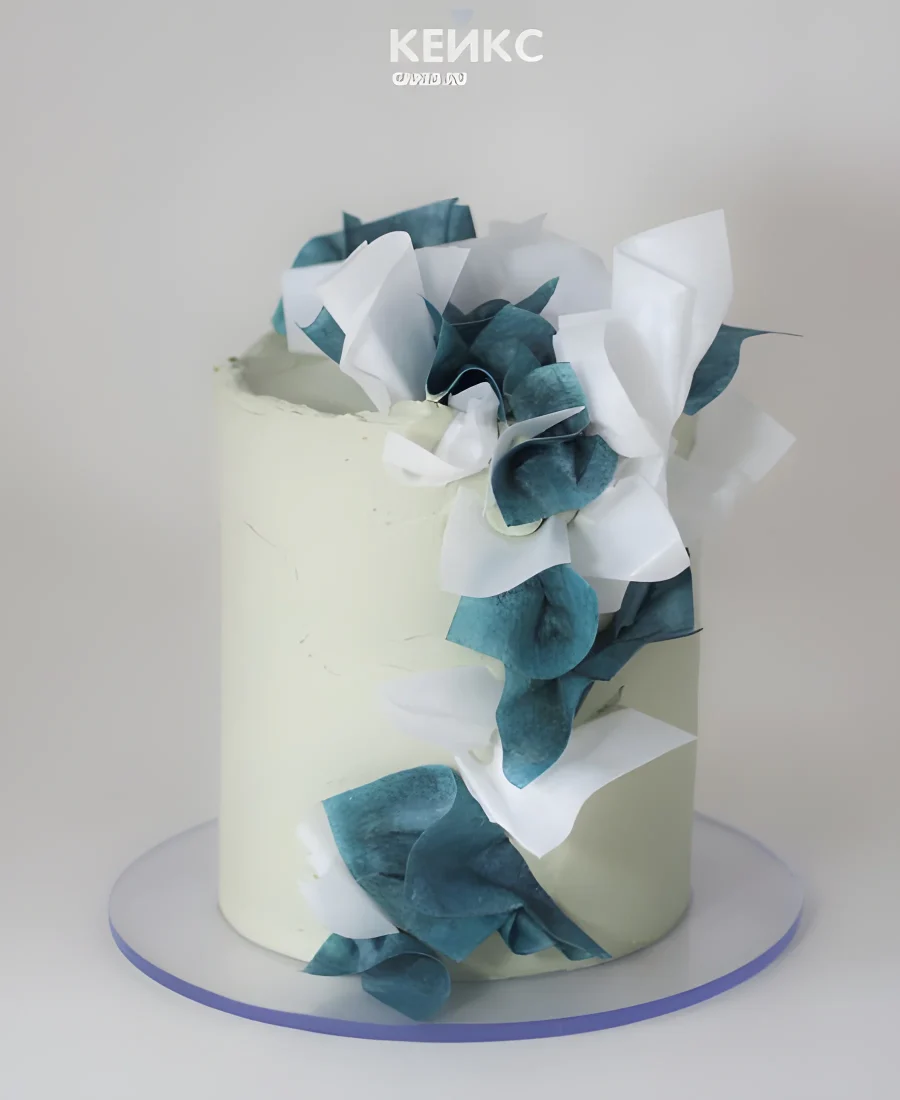 Эстетичный торт с бело-голубым украшением