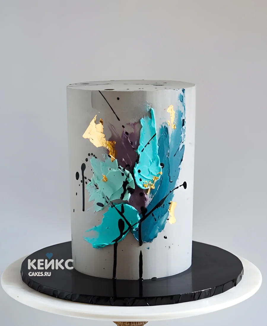 Эстетичный торт с яркими мазками и брызгами шоколада