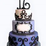 Эстетичный трехъярусный торт на день рождения в фиолетовых тонах