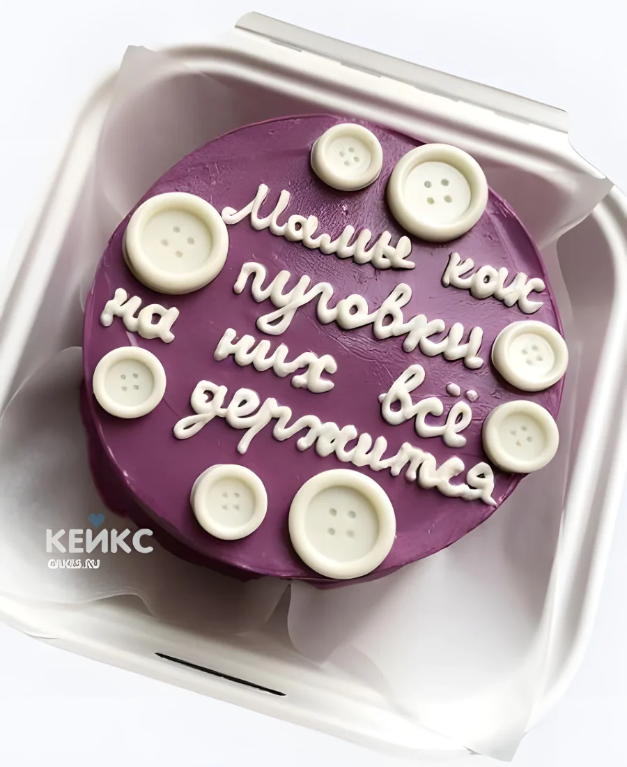 Фиолетовый бенто-торт маме с белыми пуговицами
