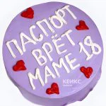 Фиолетовый бенто-торт с надписью паспорт врёт маме 18