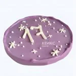 Нежный фиолетовый торт в стиле бенто создает атмосферу волшебства и загадочности. Круглая форма с бархатистой кремовой текстурой украшена изящными аппликациями в пастельных тонах. Серебристые акценты и деликатные узоры добавляют торту особой элегантности, напоминая о таинственном ночном небе. Композиция выглядит современно и утонченно, передавая ощущение праздничного настроения и внимания к деталям.