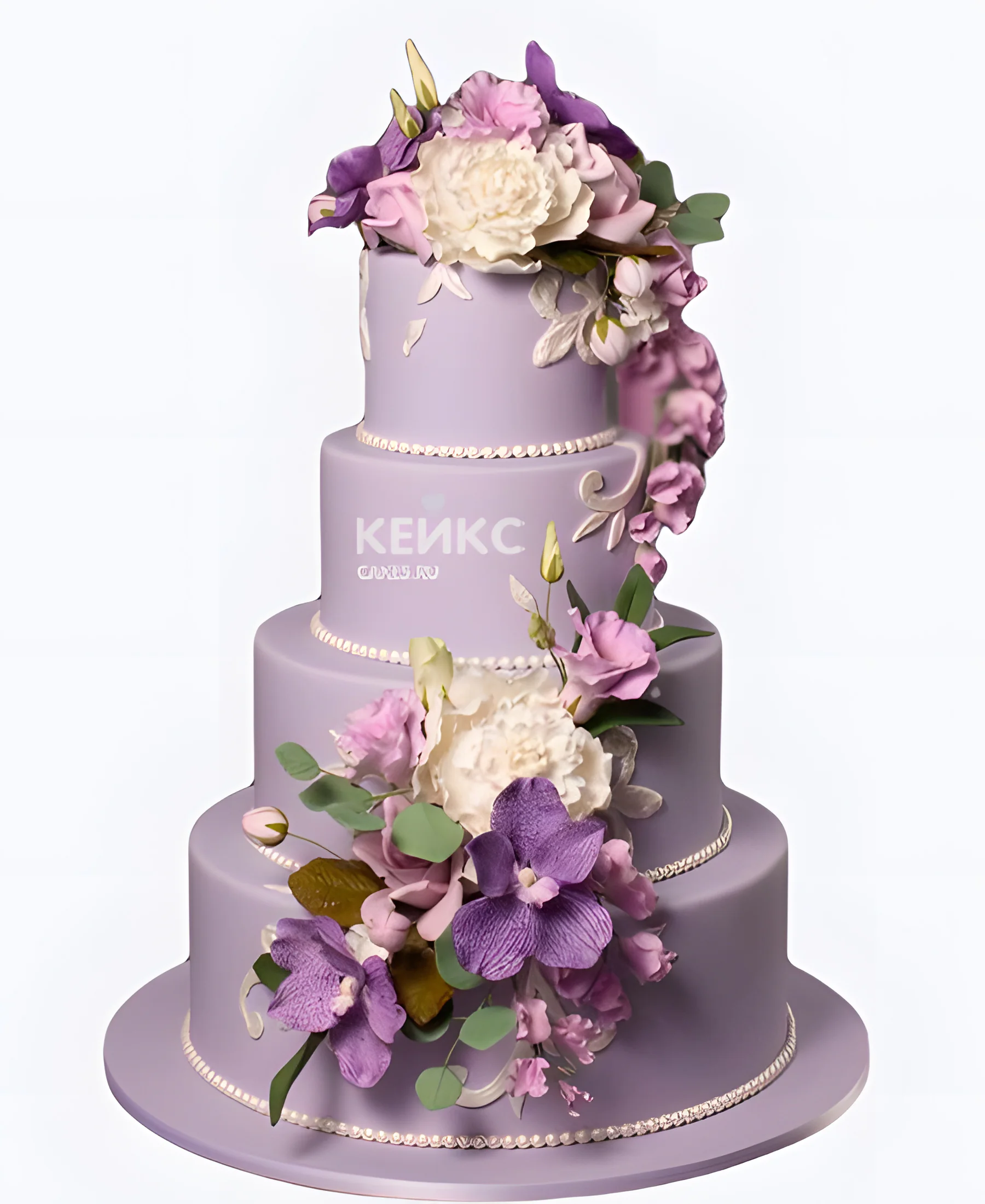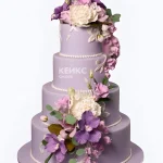 Фиолетовый свадебный торт Ассорти цветов с бусами