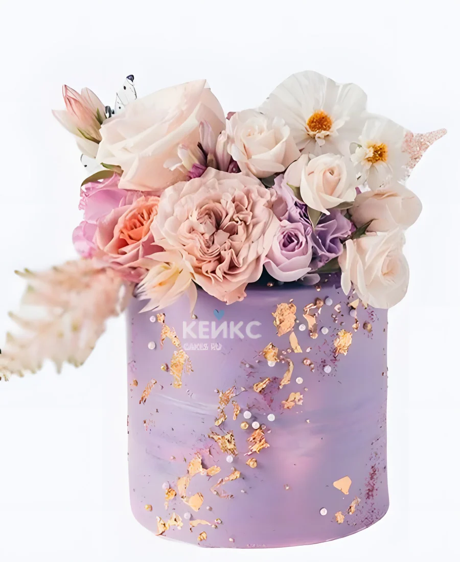 Фиолетовый свадебный торт Букет цветов