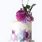 Фиолетовый свадебный торт оттенки в аппликации с цветами
