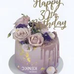 Лавандовый торт с золотом и цветами на 30 лет