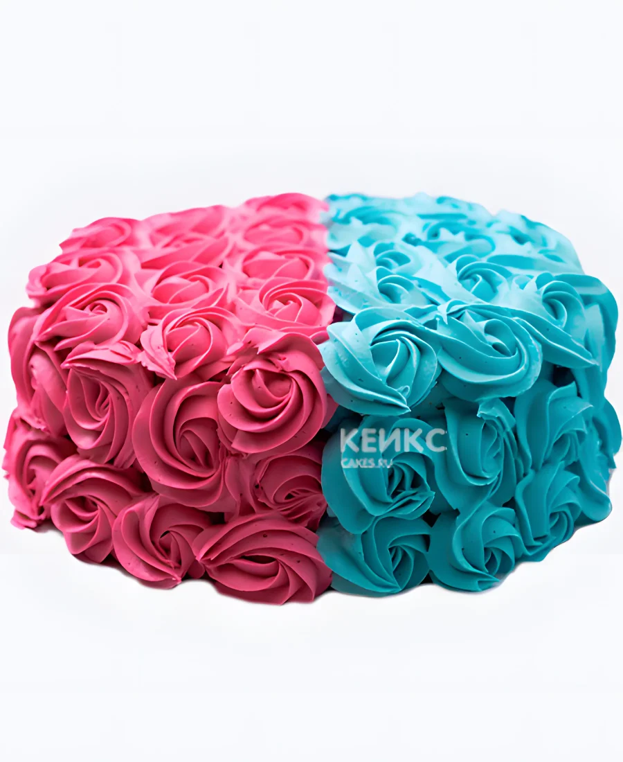 Гендер-торт с кремовыми розочками