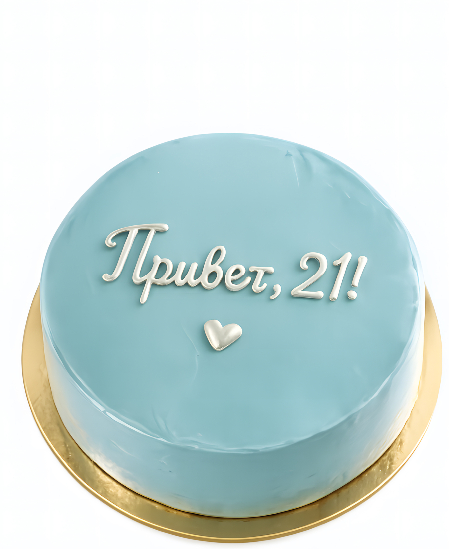 Голубой бенто-торт на 21 лет с надписью
