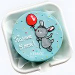 Голубой бенто-торт на 5 лет с серым зайчиком