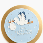 Голубой бенто-торт с аистом и ребенком