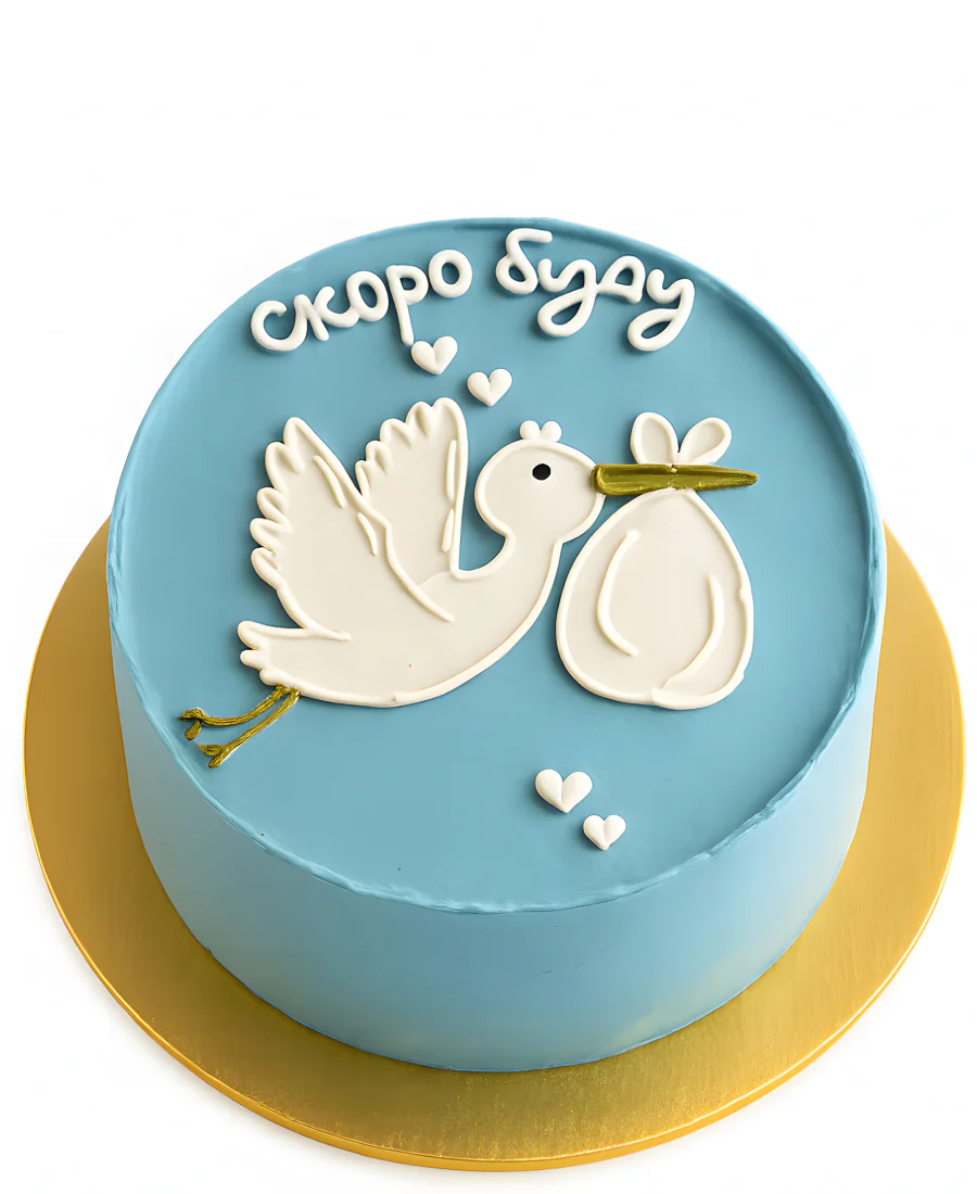Голубой бенто-торт с аистом Скоро Буду