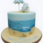 Голубой летний торт с морем и надписью