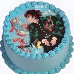 Голубой торт на день рождения аниме Клинок рассекающий демонов