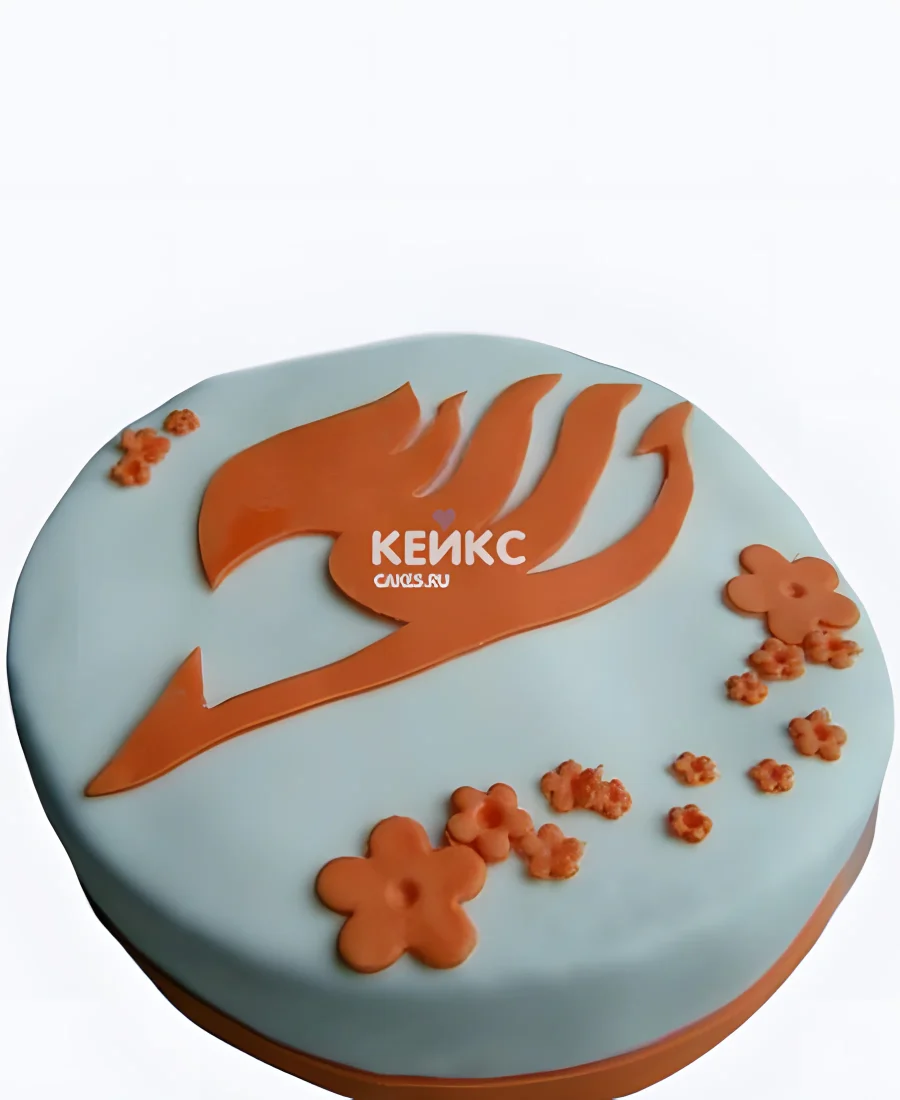Голубой торт на день рождения с мастичным декором аниме Хвост Феи