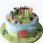 Голубой торт огород с фигурками из мастики