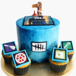 Голубой торт с фотопечатью предметов