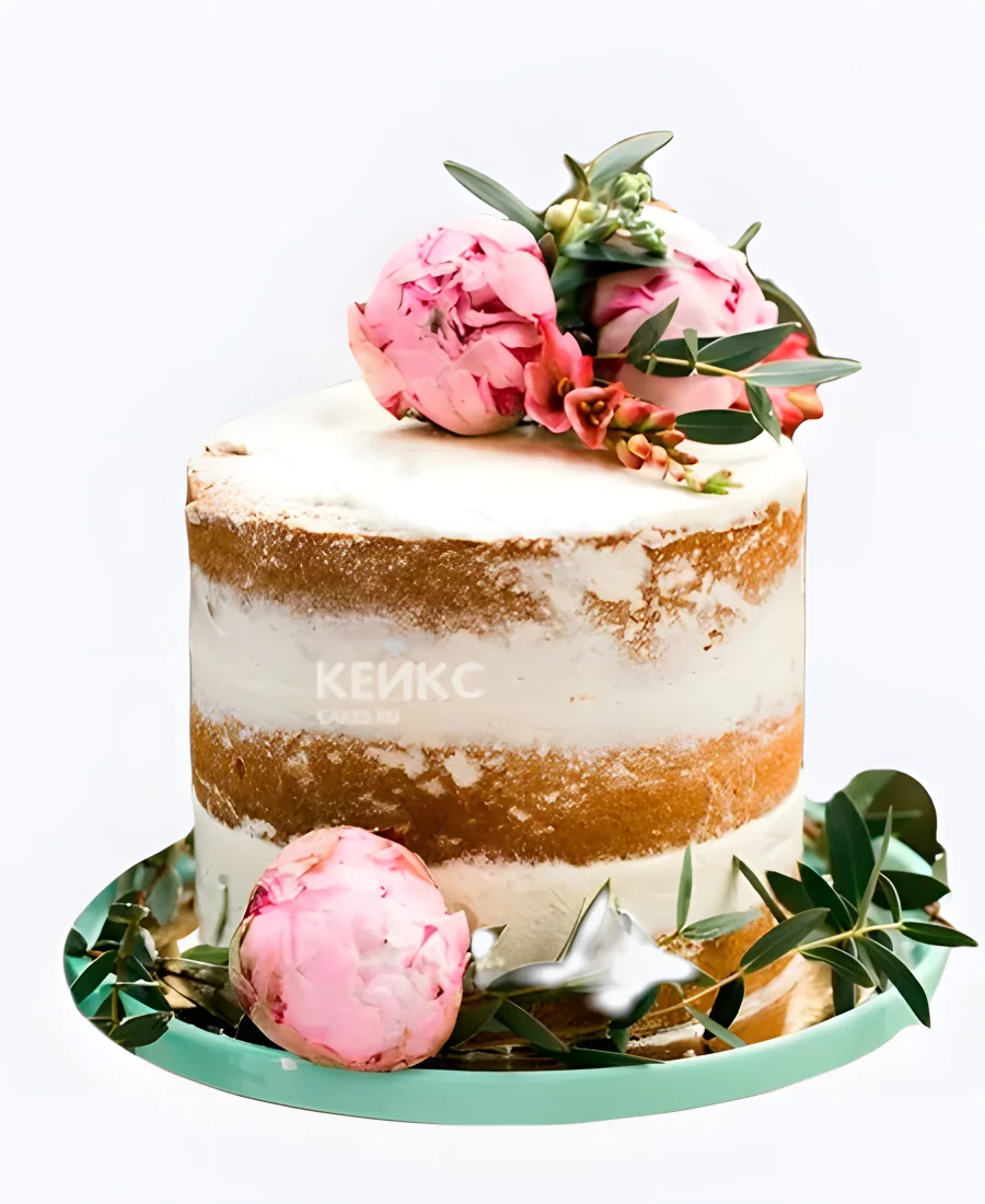 Голый свадебный торт с розовыми пионами