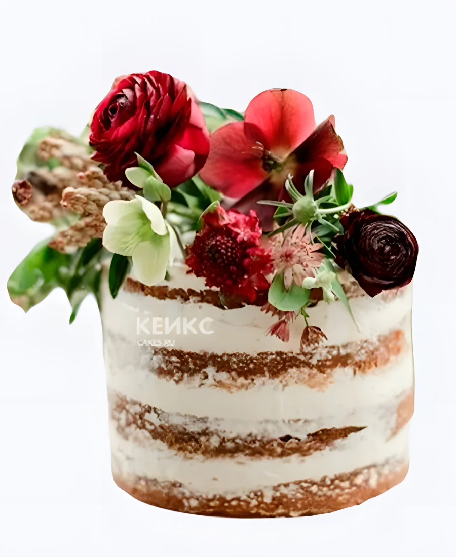 Голый свадебный торт Яркий букет