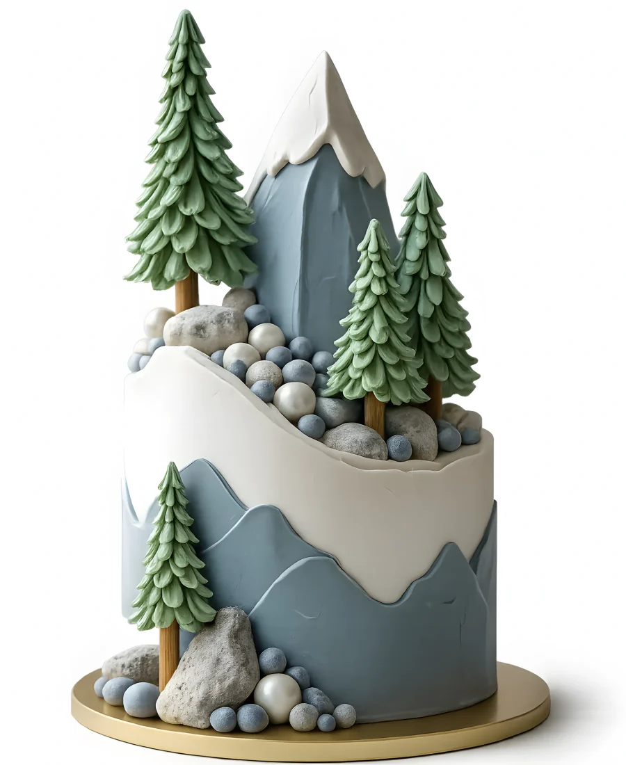 Грациозный торт с елями и горными вершинами