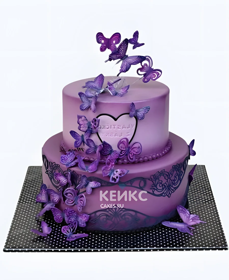 Изящный фиолетовый торт с бабочками