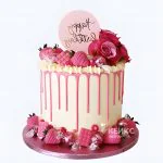 Изящный торт девушке на 20 лет с клубникой и сладостями