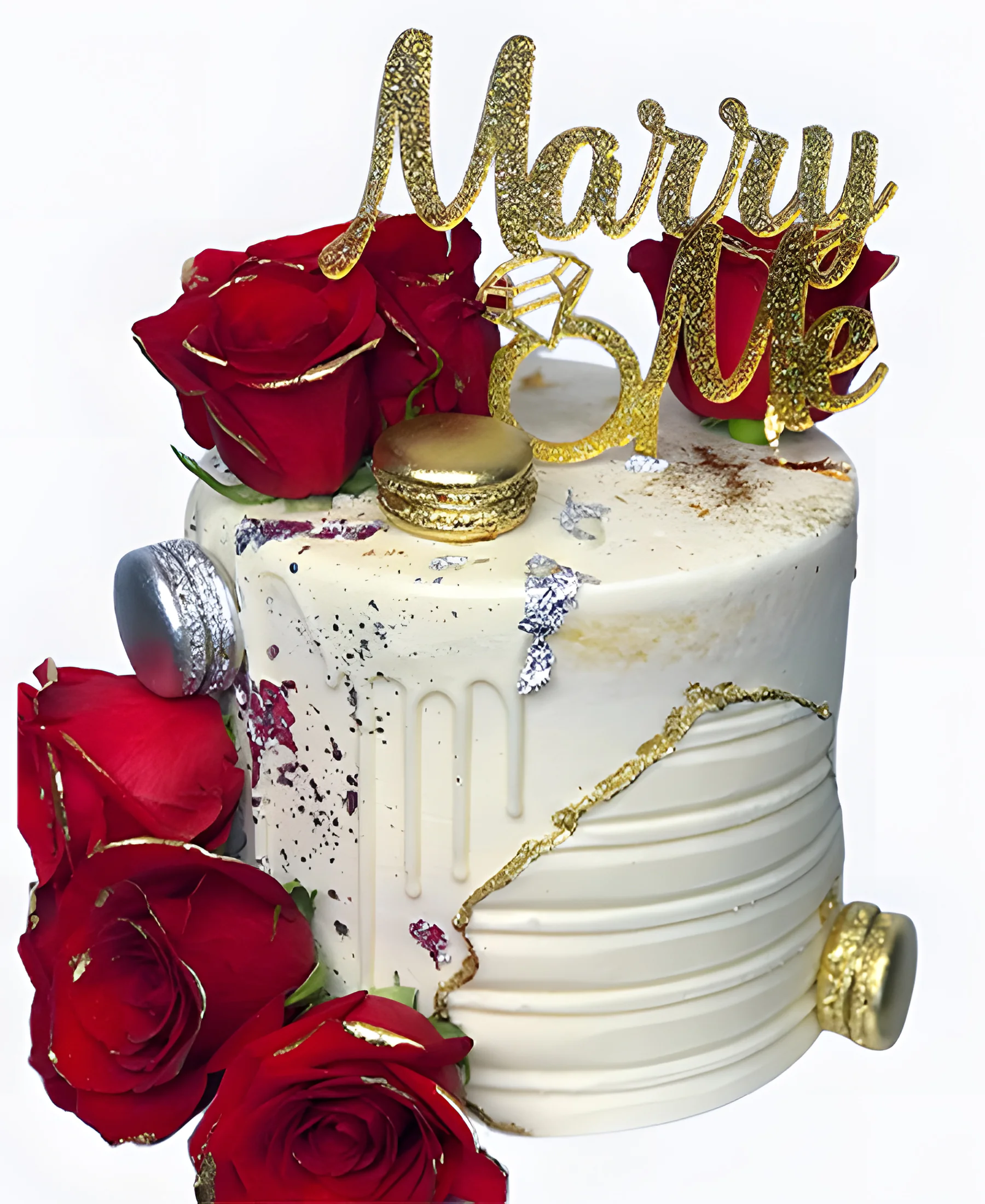 Изящный торт на сватовство с розами и макарунс