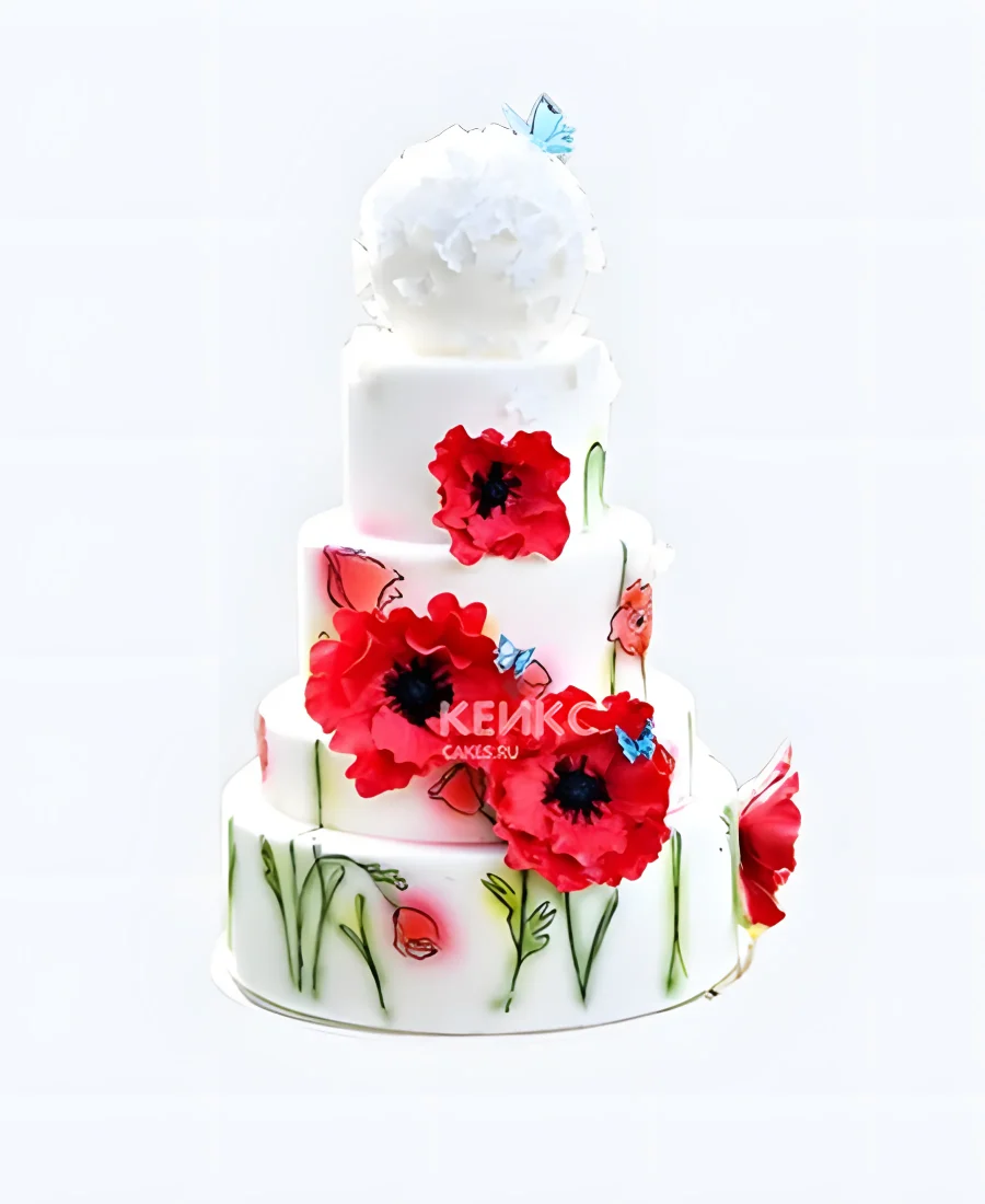Изящный торт с маками из мастики