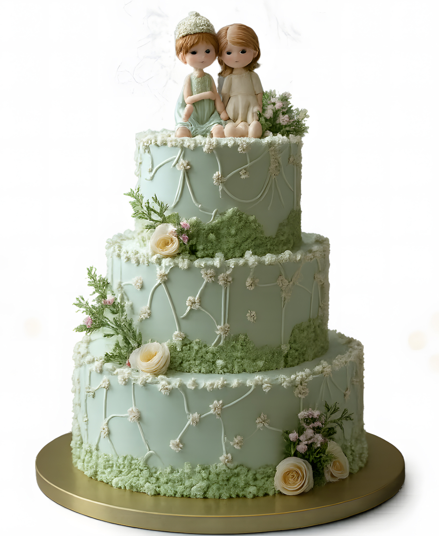 Изящный торт в стиле лесной идиллии с фигурками человечков