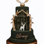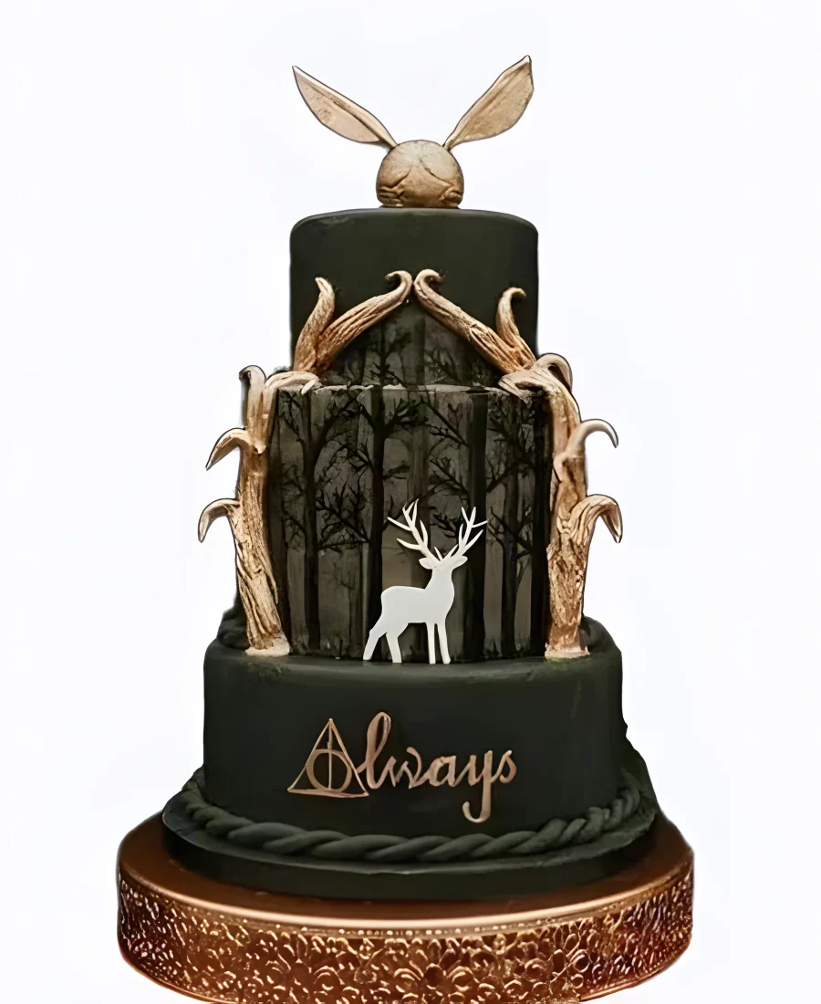 Изящный тортик с лесом и красивым оленем по Гарри Поттеру