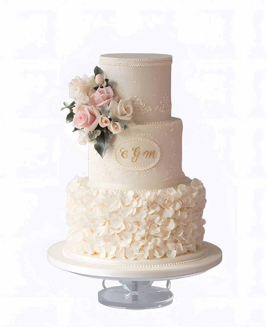 Изящный трендовый торт с лепестками на свадьбу