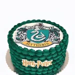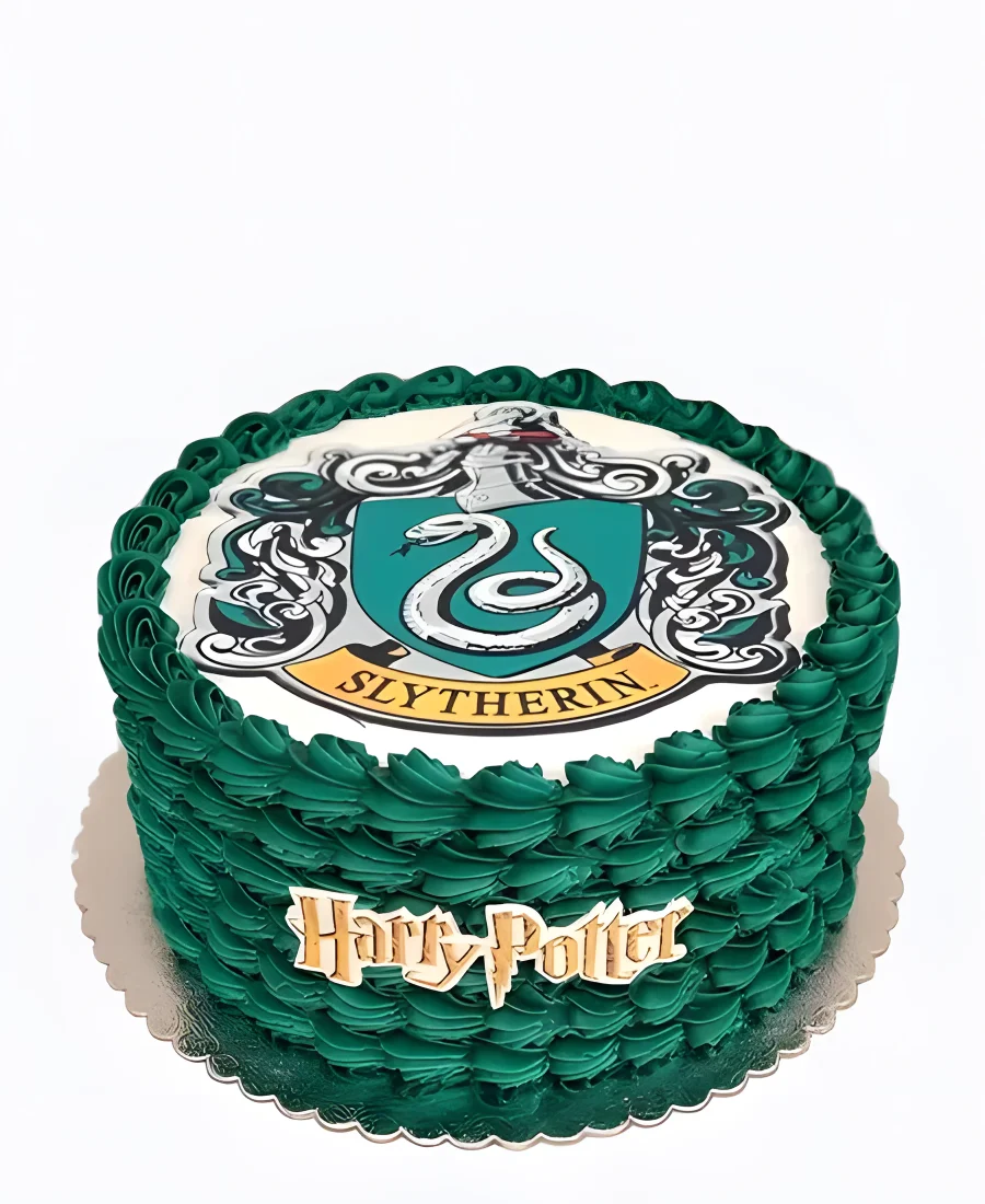 Изящный зеленый тортик Гарри потер с фотопечатью факультета