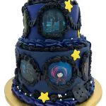 Двухъярусный торт с картинками из мультфильма Коралина