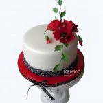 Нежный торт в пастельных тонах с изящными маками из мастики. Цветы насыщенного бордового цвета эффектно контрастируют с кремовым фоном. Каждый лепесток проработан с удивительной точностью, создавая ощущение хрупкой природной красоты. Лаконичная форма и сдержанная цветовая гамма придают десерту особую элегантность и утонченность.