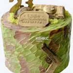 Этот торт – настоящая стильная дань мужественности и празднику 23 февраля. Камуфляжный принт в оттенках хаки, серого и бежевого создаёт эффект военной экипировки. Золотые фигурки – звёзды, шевроны и надписи – добавляют торжественности и блеска. Чёткие линии и геометрические элементы подчёркивают строгость и лаконичность дизайна. Торт выглядит мощно и брутально, но при этом сохраняет элегантность благодаря благородному сочетанию цветов.