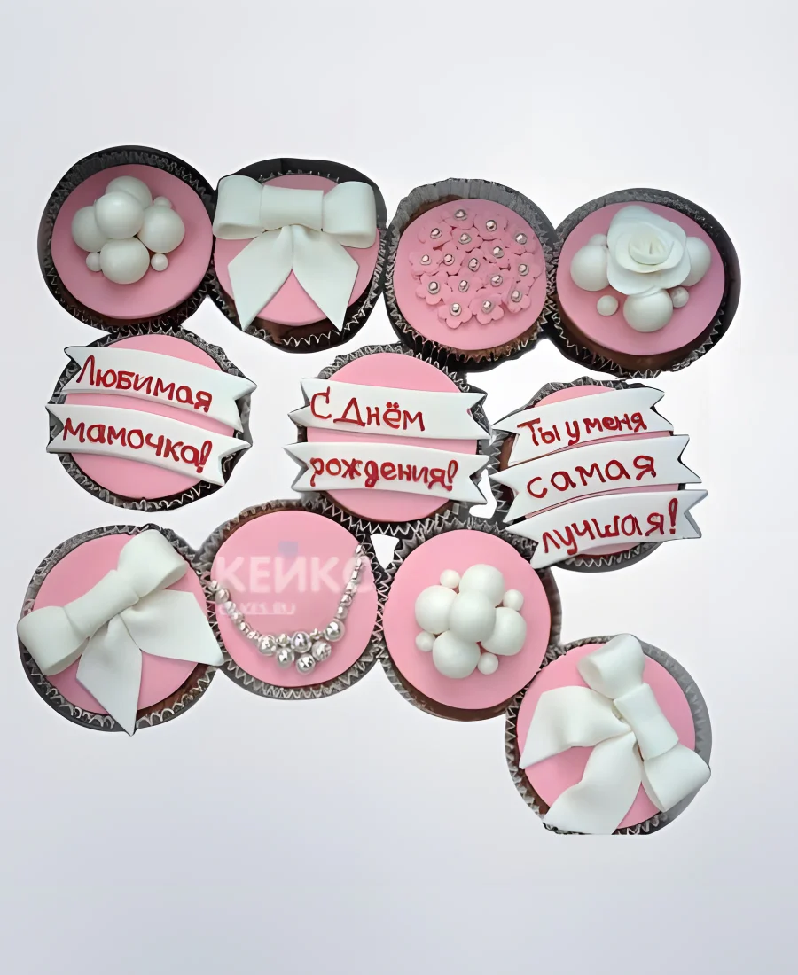 Капкейки для мамы в розовых тонах с надписями и пожеланиями