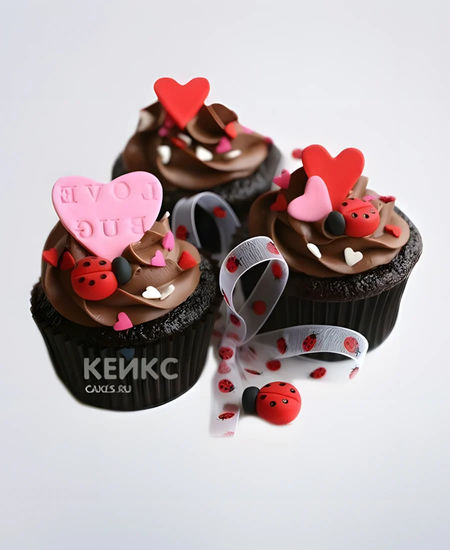 Капкейки на день святого Валентина с сердечками и божьими коровками