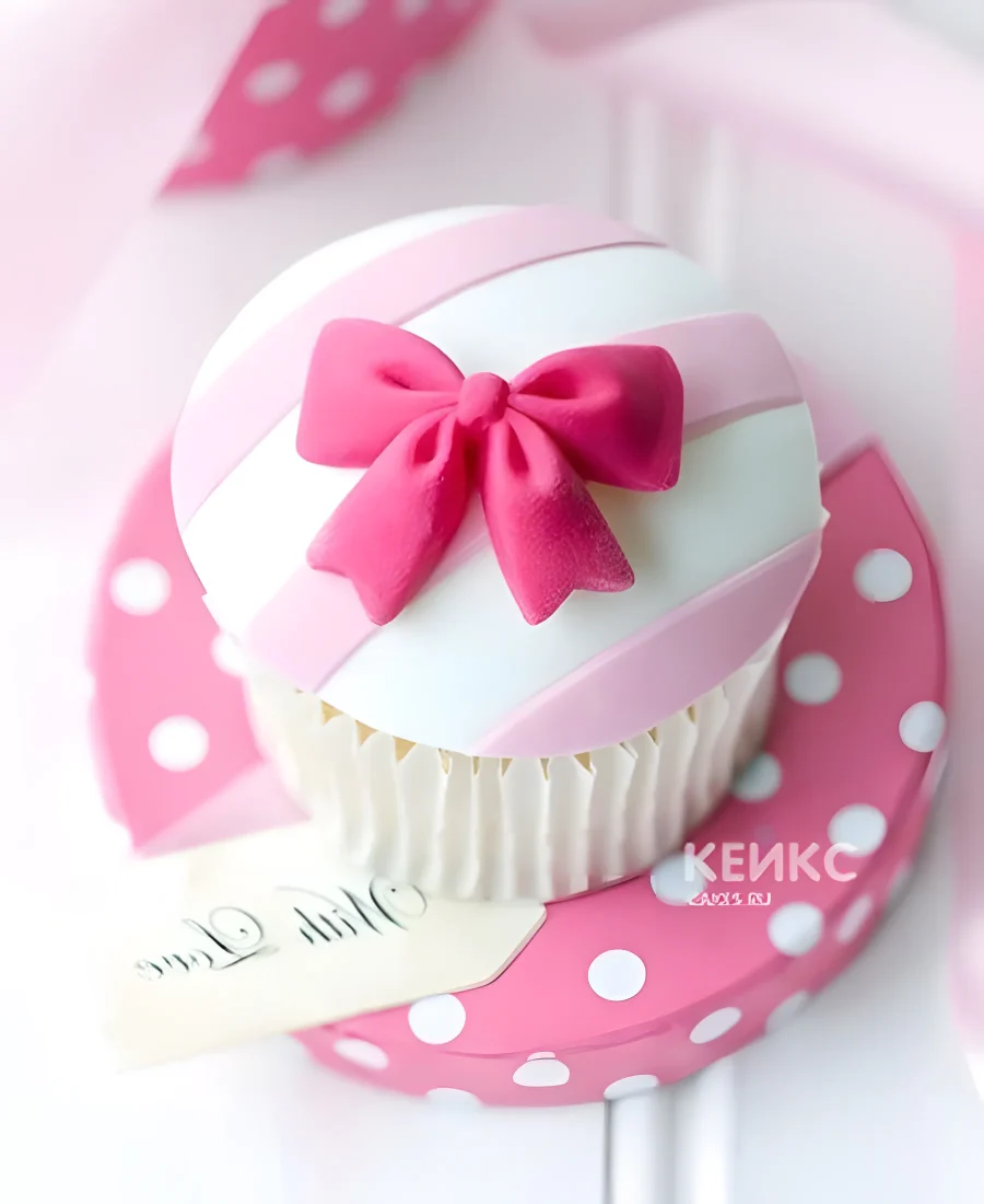 Капкейки на годик девочке с бантиком в розовых тонах