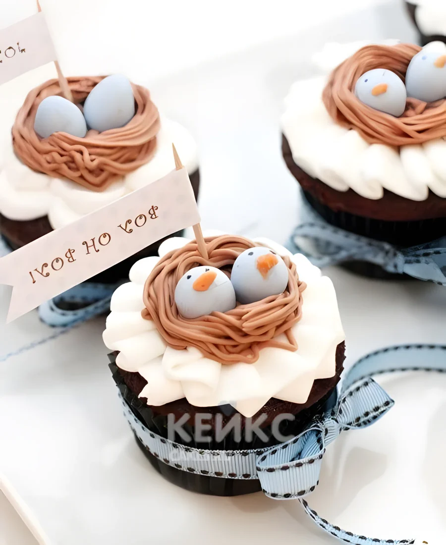 Капкейки с птичками в гнездах на выписку из роддома