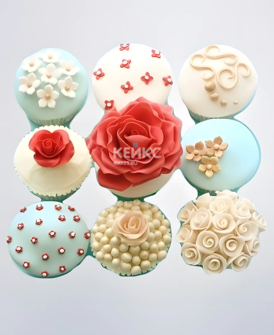 Разноцветные капкейки с цветами из мастики