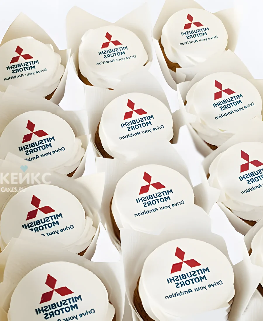 Корпоративные капкейки с фотопечатью логотипа митсубиси