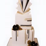 Корпоративный торт Черно-золотые линии и цветы