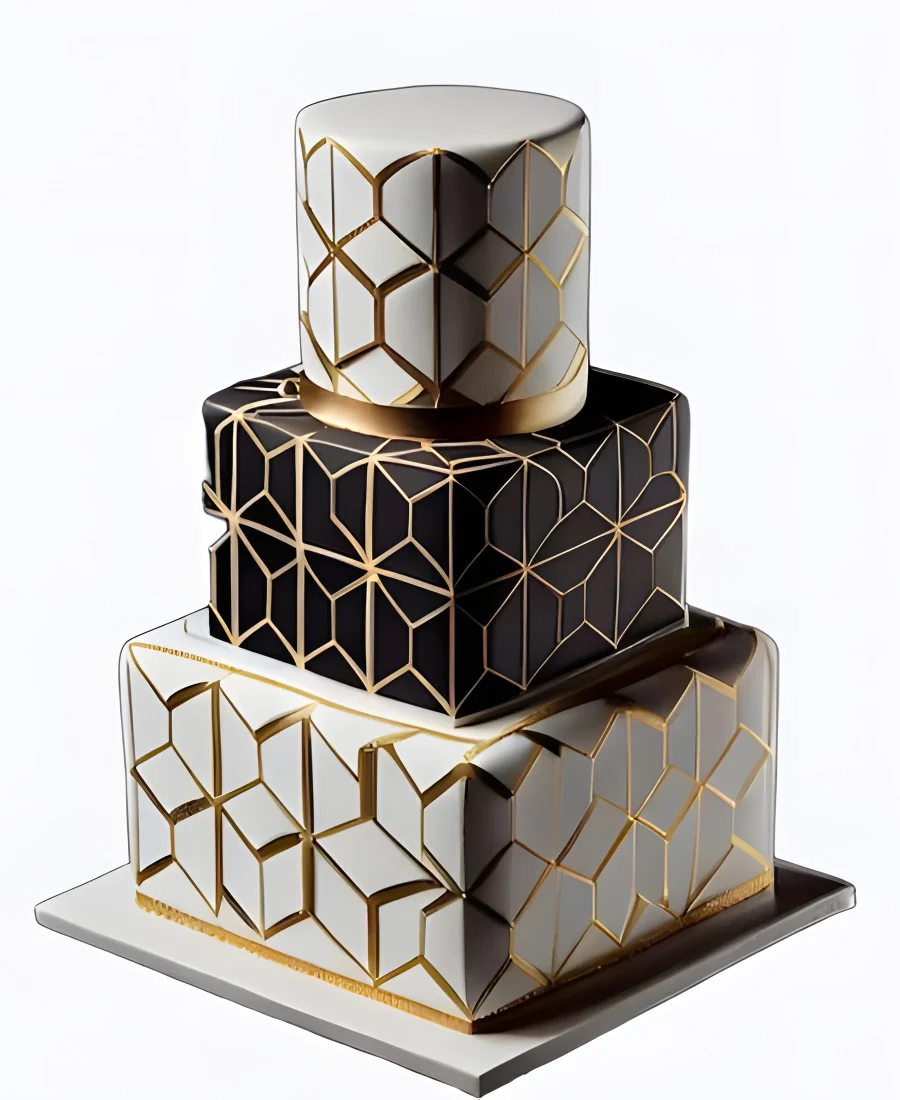 Корпоративный торт квадратно-круглый с золотыми узорами