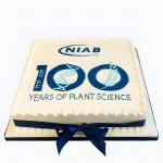 Корпоративный торт квадратный с синей ленточкой