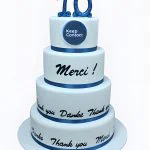 Корпоративный торт с синей лентой и надписями