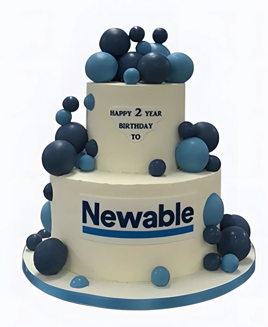 Корпоративный торт Синие шары на белом