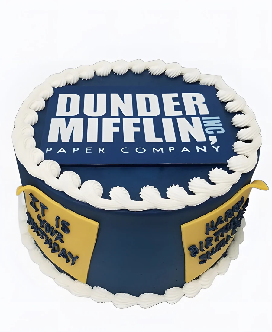 Корпоративный торт синий с надписями